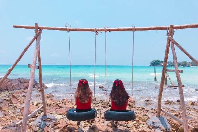 Những chiếc xích đu thể hiện sự năng động, mang màu sắc tươi trẻ của những đôi bạn thân. Cả hai có thể ngồi trên 2 chiếc xích đu nhìn nhau và mỉm cười thật tươi, hay một bạn ngồi và một bạn đẩy cùng nhìn nhau cười.