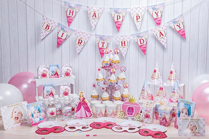 Giống với các phụ kiện trang trí sinh nhật bé trai, các phụ kiện trang trí sinh nhật bé gái cũng được theo set chủ đề bạn có thể dễ dàng lựa chọn và giá cũng rất hợp lý.