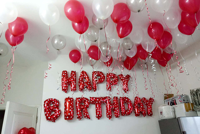 Tạo không gian sinh nhật lãng mạn cho người yêu bạn có thể sử dụng các loại bóng bay sinh nhật, bóng chữ cái, bánh sinh nhật in hình cô ấy,.... Để tăng thêm phần lãng mạn bạn có thể sử dụng màu sắc như: hồng, trắng, đỏ kết hợp với nhau.
