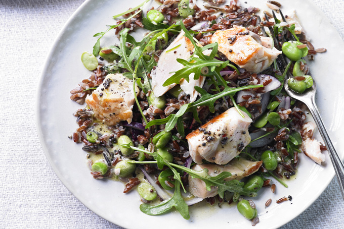 Cá hồi thịt trắng rất giàu omega-3, ngăn ngừa quá trình tích mỡ, chứa hàm lượng chất béo và calo rất thấp, không gây tăng cân, tích mỡ như những loại thực phẩm khác. Hoặc cá thu, cá mòi đều có tác dụng giảm cân tương tự.