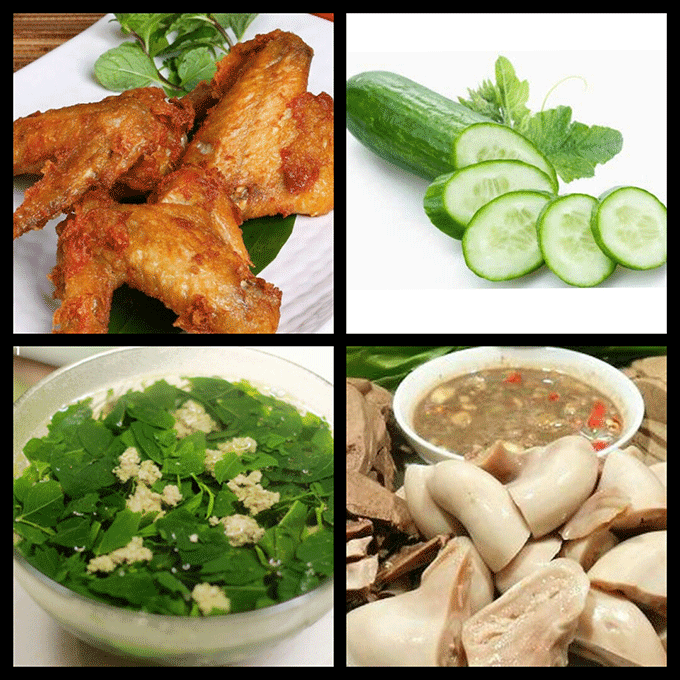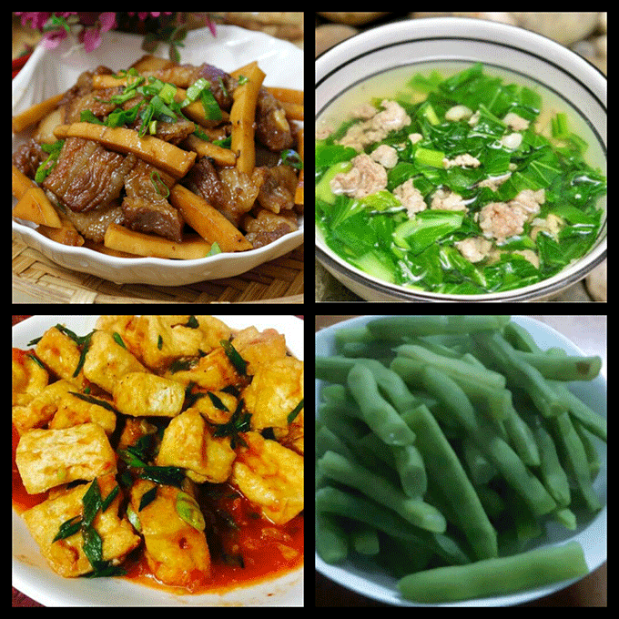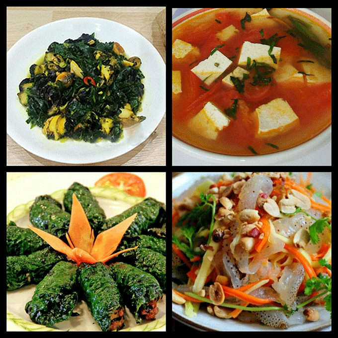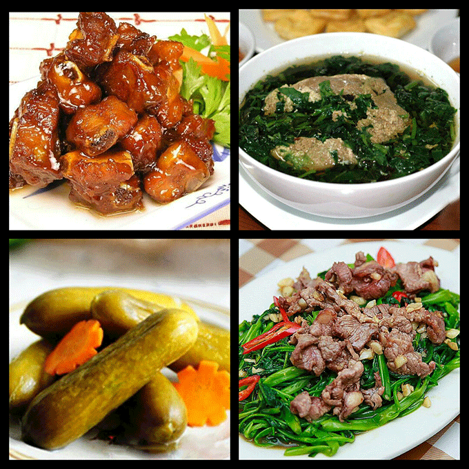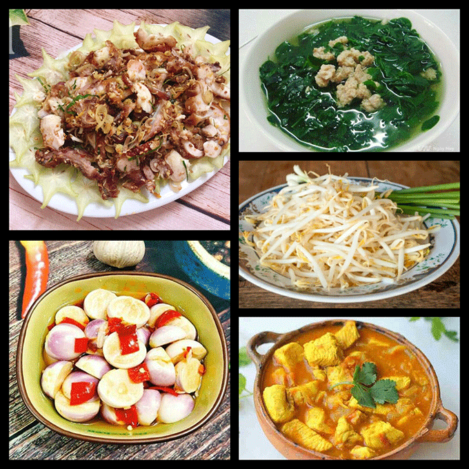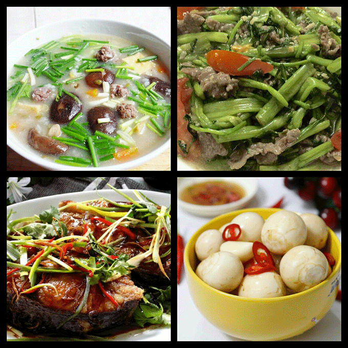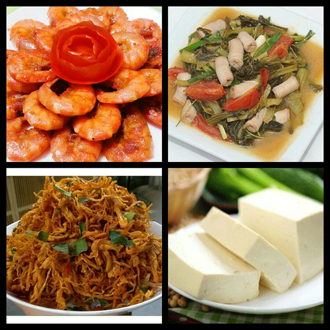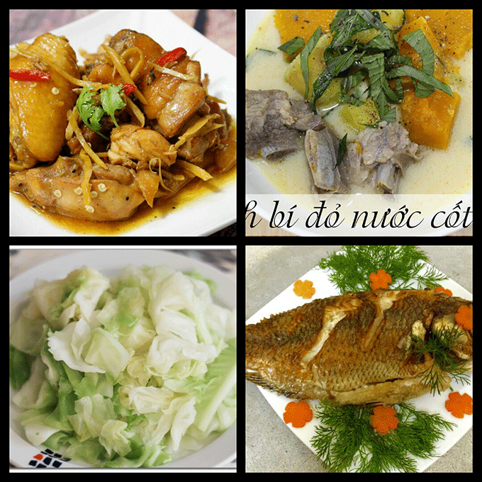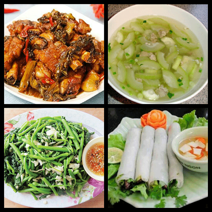 Thực đơn món ngon hàng ngày dầy đủ dinh dưỡng.
