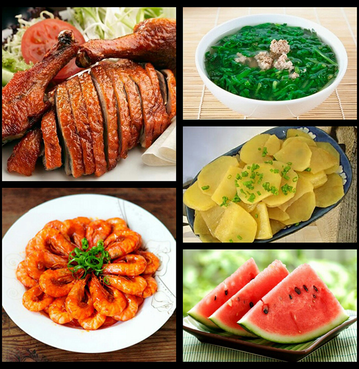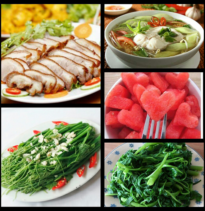 - Hoa quả tráng miệng.Vào hè có rất nhiều loại hoa quả cho bạn lựa chọn này: Thanh long, cam, xoài, dưa hấu…