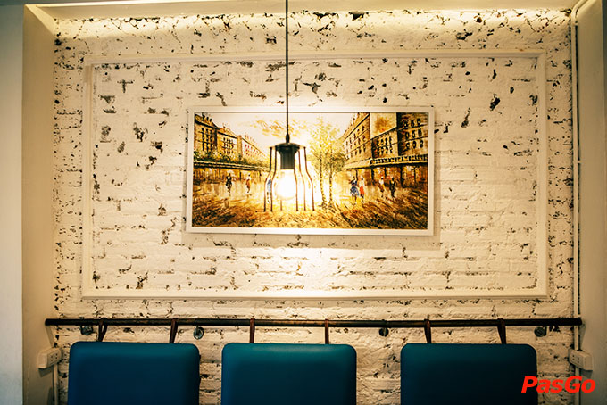 Nét cổ kính của nhà hàng được được thể hiện bởi bởi một vài góc tường xám trắng cố tình làm cũ hay những ô cửa sổ hình vòm mang phong cách Pháp truyền thống nhưng cũng không kém phần hiện đại với những chiếc đèn chùm đậm chất phương Tây. Những bộ bàn ghế màu nâu trầm, màu xanh cổ vịt kết hợp hài hòa dưới ánh đèn vàng cùng những mảng tường xanh, tường trắng làm nơi đây không kém phần sang trọng. Chẳng cầu kỳ cũng chẳng hoa lệ, chỉ đơn giản là sắc trắng, đen, xanh, xám được kết hợp hài hòa tô điểm khắp không gian nhưng lại mang đến vẻ đẹp trang nhã, trầm lặng đầy cuốn hút cho Le Monde Steak