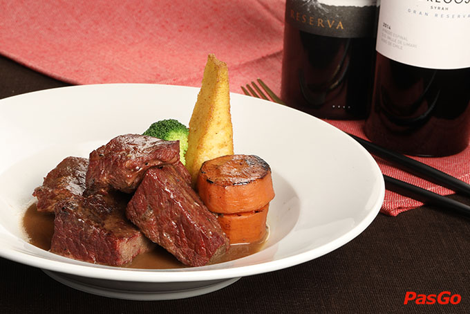 Với một nhà hàng Steak chuẩn Pháp, điều đầu tiên cần có là thực đơn các loại Steak đa dạng tiếp đến là chất lượng nguyên liệu và hương vị. Đúng vậy, lướt qua một lượt thực đơn tại đây, mình thật sự hài lòng bởi sự phong phú của Steak nơi đây có: AUS Top Blade (Lõi vai bò Úc), AUS Striploin (Thăn ngoại bò Úc), Grilled Lamb Rack (Sườn cừu kiểu Pháp), Đùi cừu hầm, Cá hồi áp chảo, Tráng miệng kiểu Pháp (Chocolate Tart, Cream Brulee)…