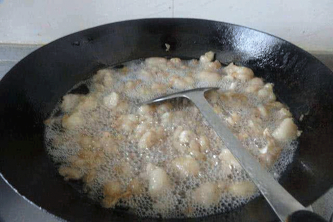 - Dùng chảo để thắng mỡ gà, vớt bỏ tóp mỡ đi để lấy nước mỡ phi hành.
