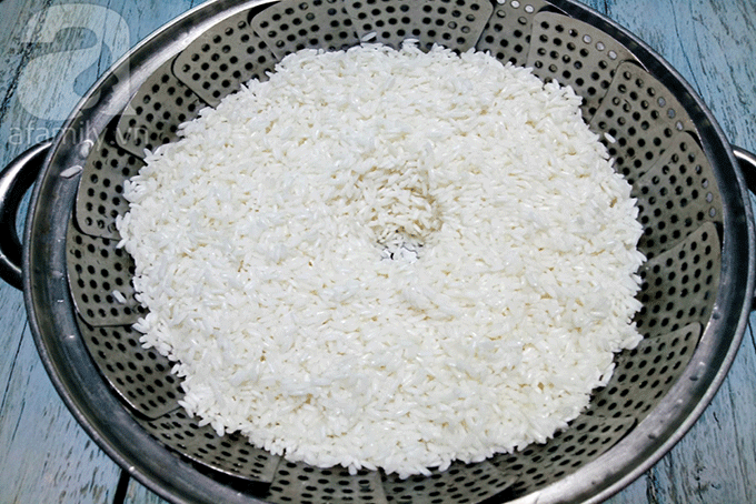 Lưu ý: Gạo nếp và đậu xanh phải hấp chín riêng nên bạn có thể dùng xửng hấp riêng để đồ xôi, còn xửng hấp nồi cơm điện để hấp đậu xanh.