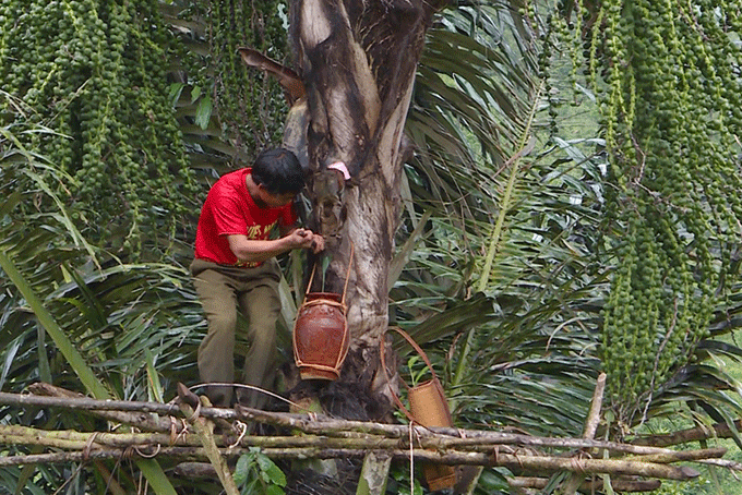 Để lấy rượu người ta chặt đứt cuống buồng quả của cây và hứng nước chảy ra, sau đó cho thêm một ít lá rừng vào là có rượu để uống. Rượu có vị cay cay và hương thơm đặc trưng, khi thưởng thức cùng với thịt rừng nướng chấm muối ớt xanh thì không còn gì bằng.