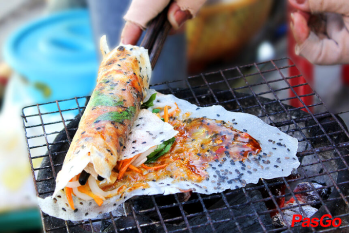 Được mệnh danh là "pizza Việt", bánh tráng nướng mắm ruốc là món ăn đặc sản Bình Thuận hấp dẫn với lớp nhân đầy đủ và mùi mắm ruốc đặc trưng. Đây là món ăn vặt đường phố nổi bật của Phan Thiết.