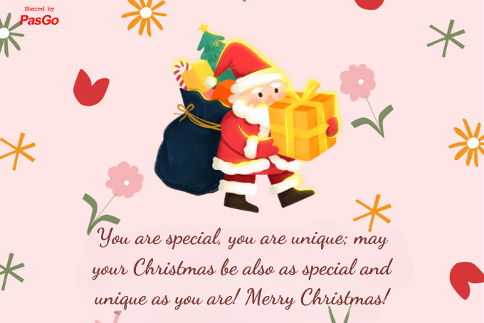 1. You are special, you are unique; may your Christmas be also as special and unique as you are! Merry Christmas!