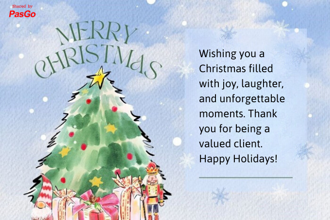 1. Wishing you a Christmas filled with joy, laughter, and unforgettable moments. Thank you for being a valued client. Happy Holidays!