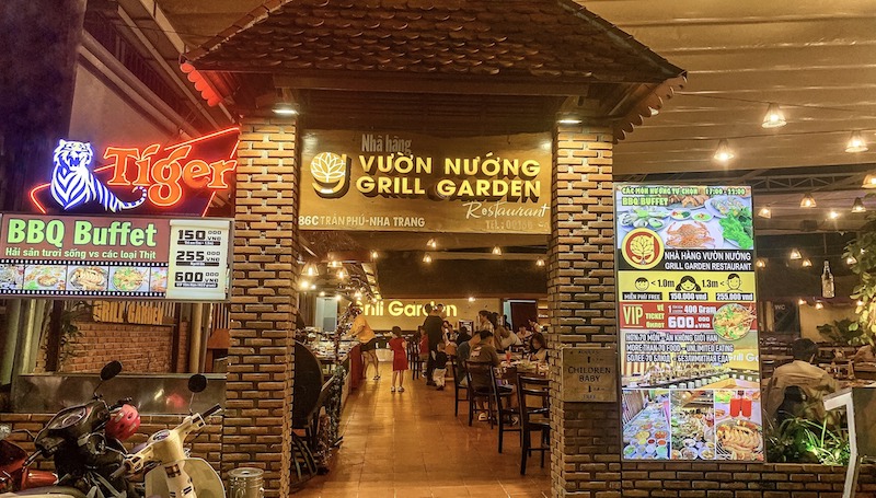 Grill Garden không chỉ nổi bật bởi thực đơn phong phú mà còn bởi không gian rộng lớn và thoáng mát. Với sức chứa lên tới 300 khách, nhà hàng có không gian ngoài trời có mái che, thiết kế kiến trúc mở với bàn ghế gỗ và cây xanh bao phủ, tạo cảm giác gần gũi và thư thái. Nhà hàng buffet hải sản Nha Trang – Grill Garden là điểm đến lý tưởng cho những bữa tiệc, họp mặt hay những buổi tối ấm cúng bên gia đình và bạn bè. Hãy ghé thăm và trải nghiệm sự tinh tế, phong cách và hải sản tươi ngon tại Grill Garden ngay hôm nay nha!