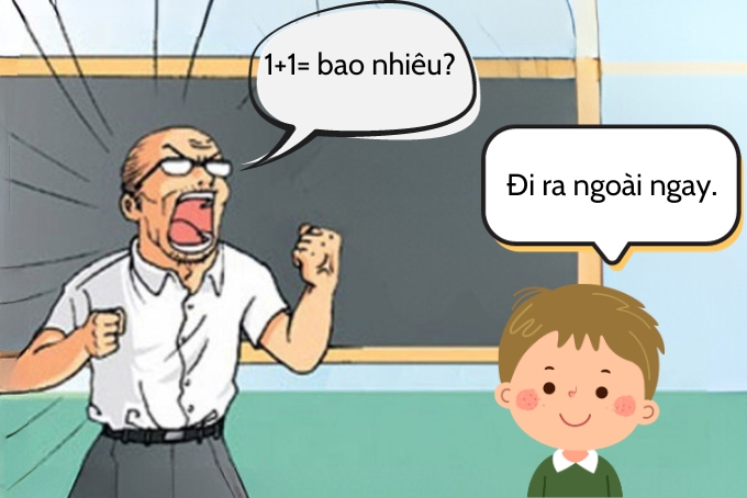 Thầy giáo bực quá tát Tôm một cái. Tôm lại trả lời: