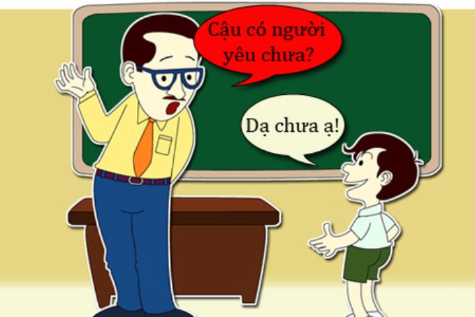 - Thoáng đỏ mặt, cô giáo hỏi lại. Em nói rõ hơn đi?