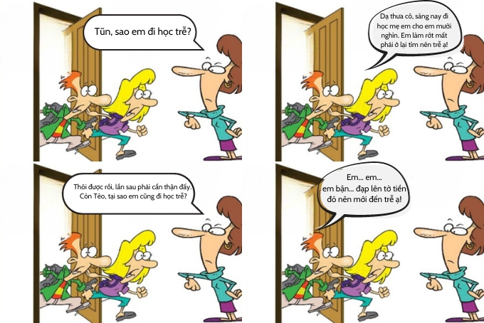 - Con đưa ra 2 lý do tại sao con không tới trường xem nào?