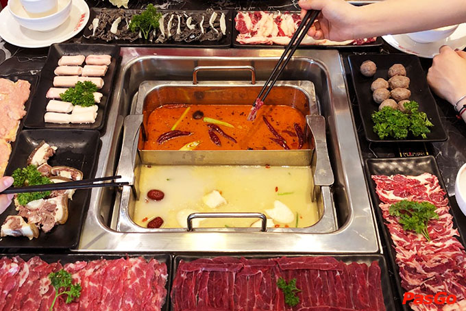 Không chỉ có vậy, nồi lẩu ở nhà hàng được thiết kế theo phong cách Tứ Xuyên gồm hai ngăn giúp bạn có thể thưởng thức cả hai vị lẩu trong cùng một nồi. Bí quyết để dùng lẩu hai ngăn đúng kiểu là chọn một bên nước lẩu tê cay, một bên hương vị thanh đạm để vị giác được cân bằng, giúp thực khách ăn ngon miệng hơn.