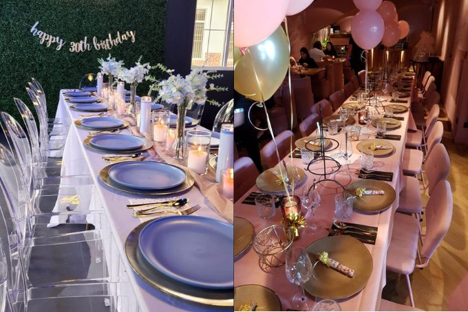 Bạn cũng có thể tham khảo trang trí tiệc sinh nhật tại nhà hàng. Phần lớn các nhà hàng nhận đặt tiệc sinh nhật hiện nay rất chuyên nghiệp trong khâu dịch vụ. Kèm theo đó, các dịch vụ đi kèm có thể được nhà hàng tặng miễn phí cho khách đặt phòng, gọi món ăn. Thật tiện lợi phải không nào? Tất cả những gì bạn cần làm là đặt tiệc, yêu cầu nhà hàng phong cách trang trí mình mong muốn, kiểm tra kỹ lại trước ngày tiệc sinh nhật diễn ra. Dưới đây là một số phong cách, ý tưởng trang trí sinh nhật tại nhà hàng, bạn có thể tham khảo: