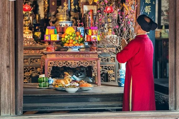 Việc cúng ông bà tổ tiên ngày mùng 1 và ngày Rằm hàng tháng là không thể thiếu, lễ vật có thể đơn giản như bánh, hoa quả, hoa tươi,... sau đó gia chủ đọc văn khấn gia tiên cầu mong bình an.