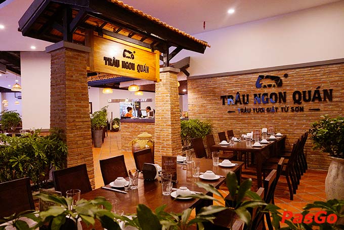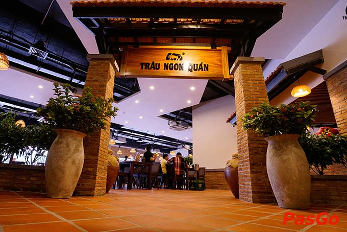 Trâu Ngon Quán có 3 cơ sở tại Hoàng Đạo Thúy, Hà Đông và Bùi Thị Xuân với 3 phong cách thiết kế khác nhau, Sở hữu diện tích lên tới 1000m2 được thiết kế theo phong cách thuần Việt mang đậm nét Á Đông, đến Trâu Ngon Quán Hoàng Đạo Thúy thực khách có thể thoải mái check in với những góc sống ảo “thần thánh” như cổng chào, biển vẫy, vại rượu, gánh hàng hoa, sân khấu.. hay những góc ngồi view tuyệt đẹp.
