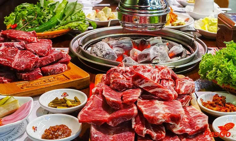 Món nướng BBQ Hàn Quốc đặc trưng với hương vị thịt nướng thơm ngon sốt ướp kiểu Hàn đậm đà cuốn với rau sống ăn cùng kim chi, món ăn kèm Hàn Quốc. Thịt nướng kiểu Hàn thường là ba chỉ heo, bò Hàn, hải sản như bạch tuộc, mực nang, hàu, tôm. Các quán nướng Hàn Quốc ngon ở Hà Nội trong Bộ sưu tập PasGo menu rất đa dạng và thực khách có thể chọn những set nướng cực hấp dẫn thưởng thức trọn vị ngon.