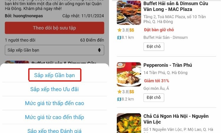Dễ dàng tìm kiếm nhà hàng nướng Hàn Quốc gần nhất với tính năng “Sắp xếp gần đây” trên PasGo