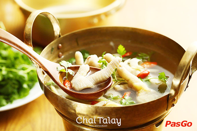 Đến Chai Talay, bạn sẽ được thưởng thức các món buffet được làm từ Bếp trưởng người Thái có 12 năm kinh nghiệm đến từ nhà hàng hải sản đường phố nổi tiếng TK Seafood tại khu phố ẩm thực đêm China Town. Các món ăn ở Chai Talay đều đậm chất ẩm thực đường phố Thái như: Chân gà rang mắm, Gà nướng lá nếp, Cá giòn xóc tỏi, Lẩu Thái bò Mỹ, Lẩu Thái hải sản...