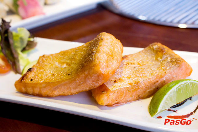 Bụng cá hồi nướng muối thơm lừng, béo ngậy đầy hấp dẫn tại buffet Kanpai Tân Bình