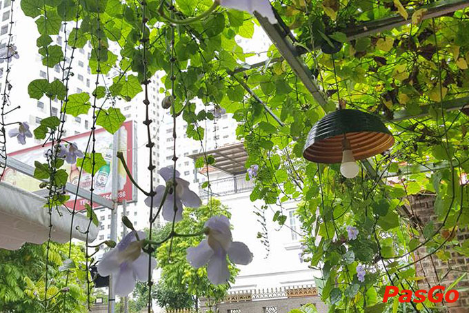 Không gian kết hợp cây xanh tạo sự thư thái có tại nhà hàng Khói Bếp 2.