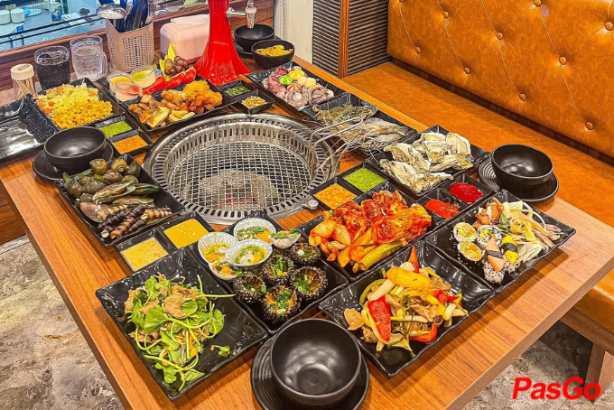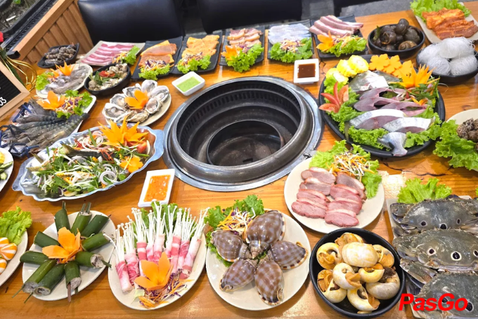 Dù không nằm ngay mặt biển, nhưng buffet hải sản ngon Quy Nhơn tại Vua Nướng vẫn khiến thực khách mê mẩn với các món tôm nướng, sò nướng mỡ hành, bạch tuộc sa tế,... được nêm nếm đậm đà. Ngoài ra còn có thịt bò Mỹ và nhiều món nướng đa dạng.