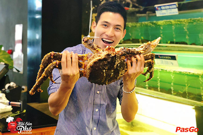 Gây tiếng vang trong giới sành hải sản Hà Thành bằng thực đơn đa dạng các món ngon chế biến từ hải sản tươi sống, không có gì nghi ngờ khi Hải Sản Phố hội tụ gần như đầy đủ các món hải sản nức tiếng cho ẩm thực Việt. Đến đây, bạn sẽ được thức các loại hải sản từ cao cấp ngoại nhập như Tôm hùm Alaska, Cua hoàng đế, cá song, tu hài Canada,… đến các loại hải sản phổ biến như tôm sú, bề bề, mực ống,…