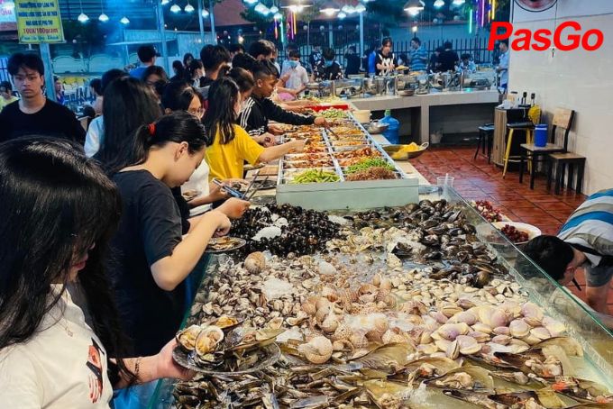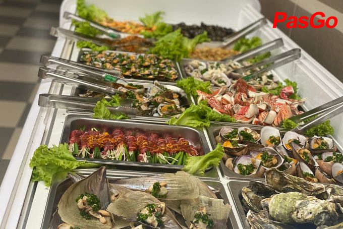 Đây quán buffet hải sản ngon ở Bình Dương sở hữu không gian rộng rãi, thoáng mát. Mang đến cảm giác thoải mái cho thực khách khi nhậu, ăn uống cùng bạn bè, gia đình, người thân yêu. Khu vực quầy line hấp dẫn với hơn 40 món đa dạng, từ các loại hải sản tươi sống như tôm, dú heo, ếch, hàu, đến nhiều loại thịt và ốc.