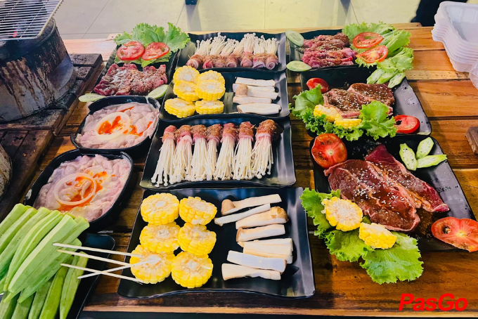 Là buffet nướng Phan Thiết giá phải chăng với đầy đủ bò, gà, hải sản, rau củ tươi. Món ăn lên đều, nướng tại bàn và không giới hạn số lượng.