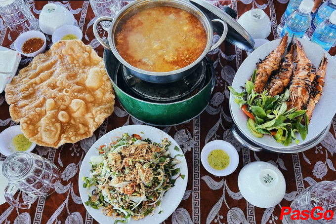Lẩu hải sản cùng tôm nướng tại nhà hàng Bé Thuỷ