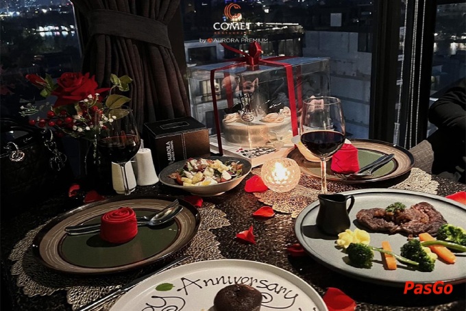 Với phong cách sang trọng, hiện đại cùng không gian có sức chứa lên tới 165 khách, view Hồ Gươm phố cổ, Comet Restaurant được mệnh danh là địa chỉ hàng đầu trong việc tổ chức sinh nhật cao cấp, tiệc hẹn hò. Nhà hàng cũng cung cấp đầy đủ các dịch vụ tổ chức sinh nhật gồm bàn ngoài trời và trang trí không gian sự kiện theo yêu cầu của khách hàng.