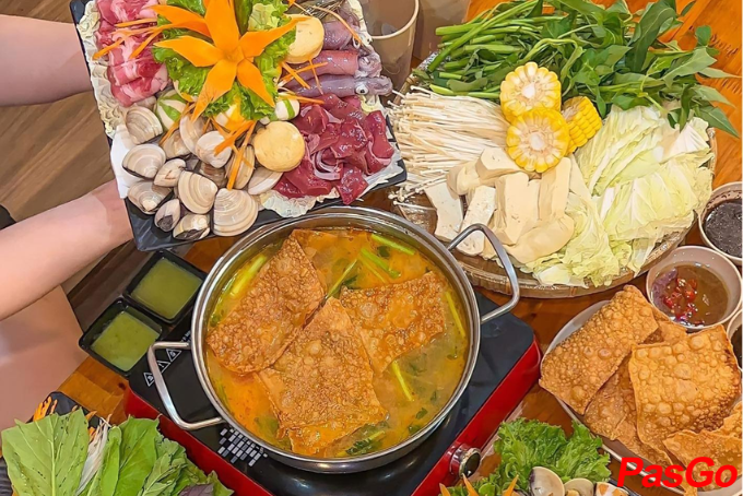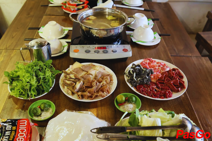 Nồi hấp cùng nhiều món ăn kèm tại Lẩu Hơi Cosmos