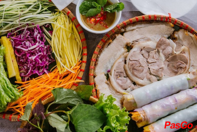 Quán ăn ngon Hoàng Quốc Việt này nổi bật với món bánh tráng thịt heo hai đầu da, rau sống tươi xanh và nước chấm kiểu miền Trung cực bắt vị. Không gian mộc mạc, dễ chịu, nằm trong danh sách món ăn ngon ở Hoàng Quốc Việt được nhiều thực khách quay lại.
