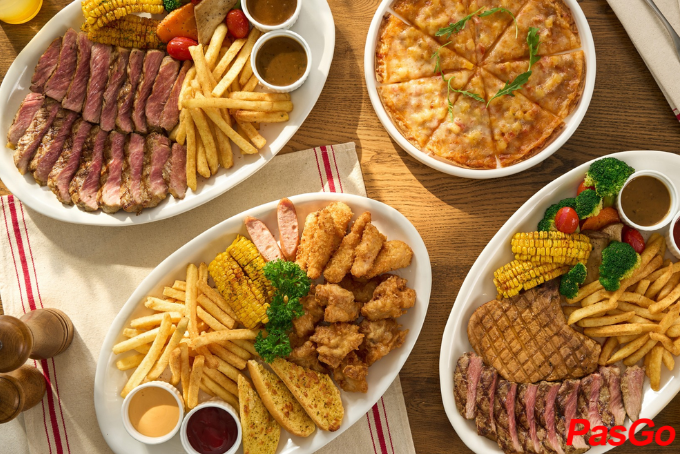Steak thơm lừng cùng khoai tây chiên và pizza tại Le Monde Steak