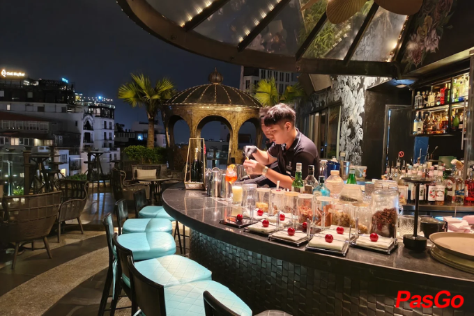Terraco Sky Bar là một quán bar view Hồ Gươm nổi bật với không gian rooftop trẻ trung, năng động, cực hợp với các buổi tụ họp bạn bè hay chill buổi tối. Quán tọa lạc ở vị trí trung tâm, dễ tìm, là một trong những quán ăn gần Hồ Gươm có view sống ảo đẹp mắt.