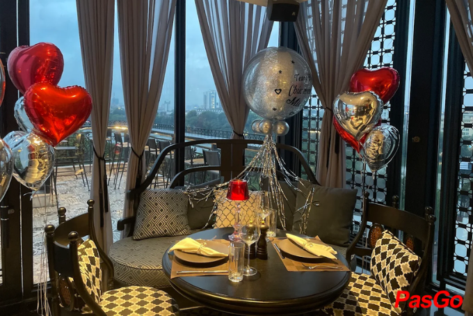 Không gian được thiết kế hiện đại, đẳng cấp, kết hợp cùng ban công mở và ánh sáng dịu nhẹ, mang đến trải nghiệm dùng bữa đầy thi vị giữa khung cảnh nên thơ bậc nhất thủ đô.