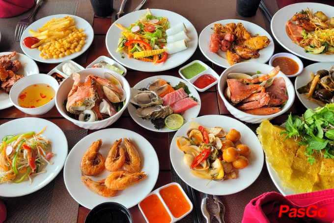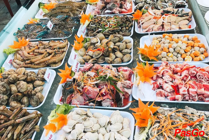 Thực đơn buffet đa dạng với các món nướng, hấp, lẩu từ tôm, ghẹ, mực… mang đến hương vị khó quên, xứng đáng là một trong những nơi ăn buffet ở Quảng Ninh đáng thử nhất.