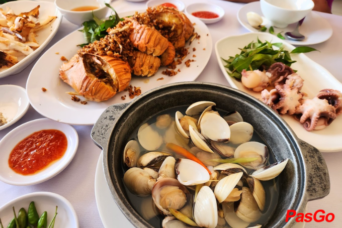 Thực khách sẽ choáng ngợp trước thực đơn hải sản phong phú và đẳng cấp, được chế biến từ những nguyên liệu tươi ngon nhất, chọn lọc kỹ lưỡng từ các vùng biển nổi tiếng. Các loại hải sản hạng sang như Tôm hùm Alaska, cua Hoàng Đế, bào ngư, ốc vòi voi... được trưng bày tại hồ, đảm bảo độ tươi ngon tuyệt đối. Thực khách có thể tự tay lựa chọn và yêu cầu chế biến theo sở thích như nướng, hấp, chọn các loại sốt,...