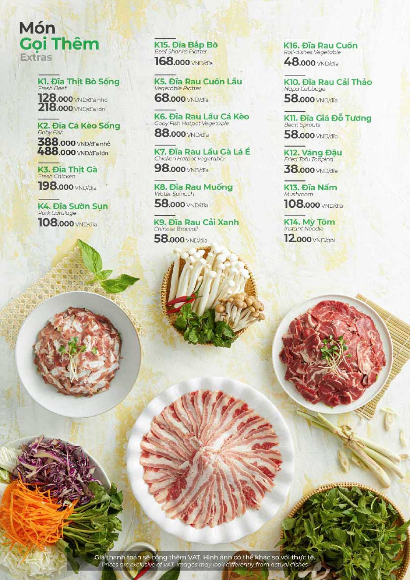 - Giá Menu chưa bao gồm VAT. Nhà hàng luôn thu VAT theo Luật hiện hành.