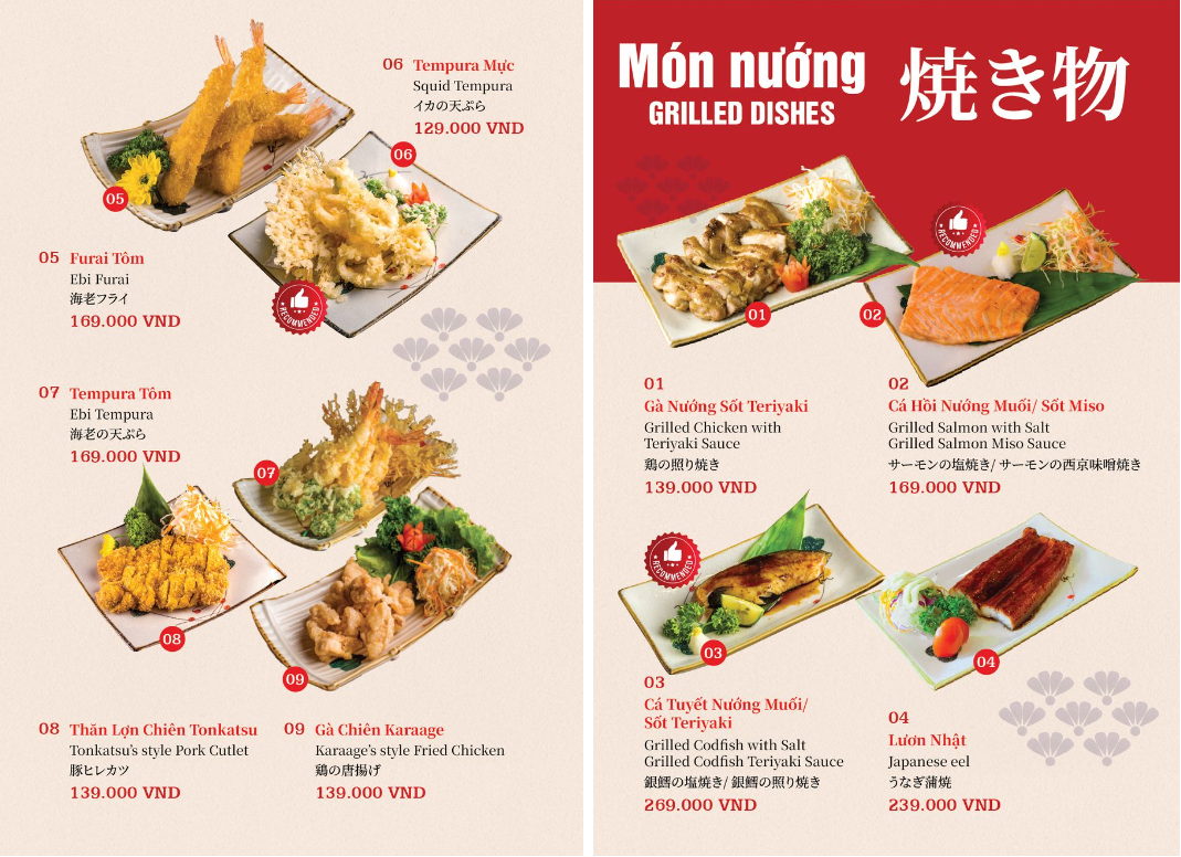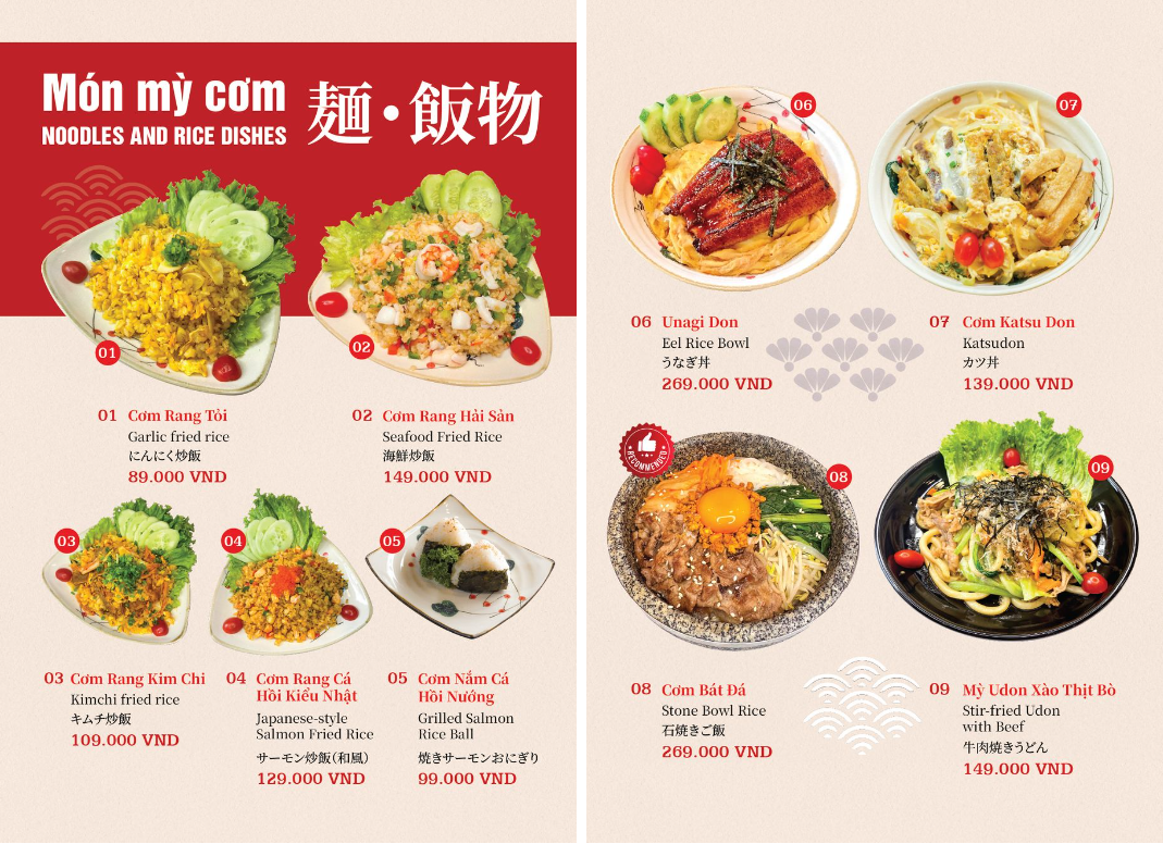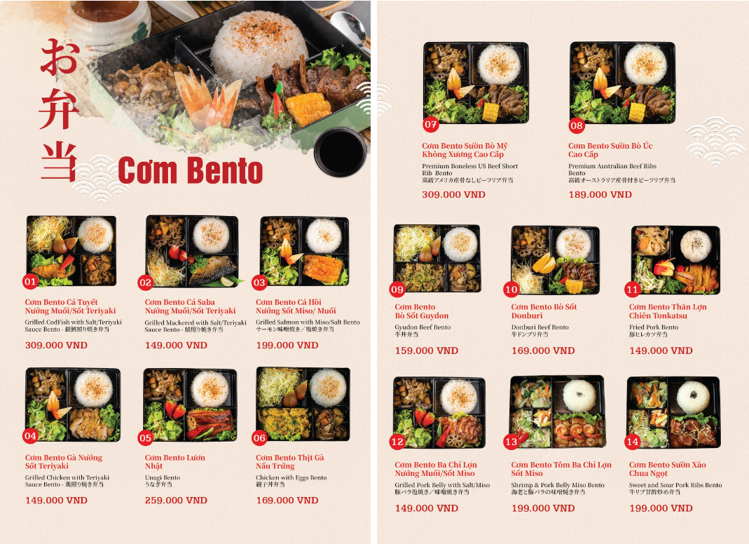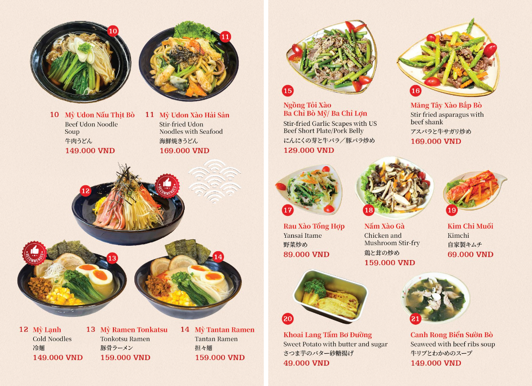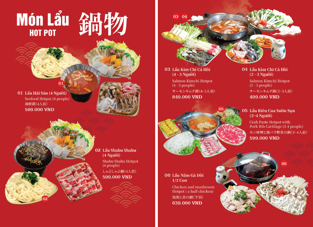 - Hoá đơn VAT: giá menu đã bao gồm VAT.