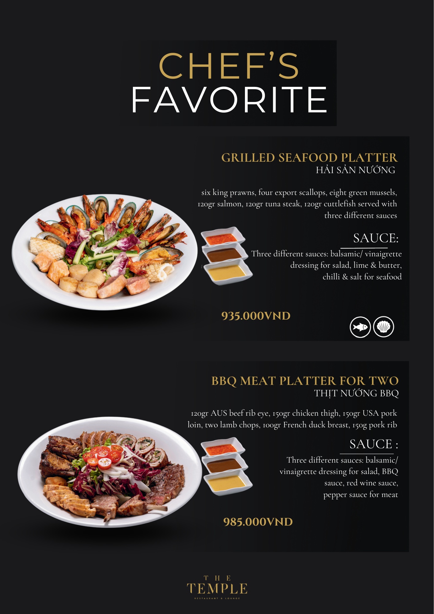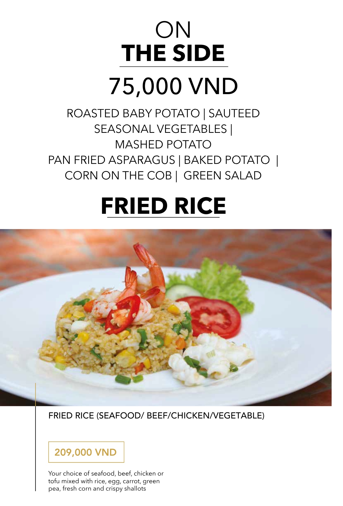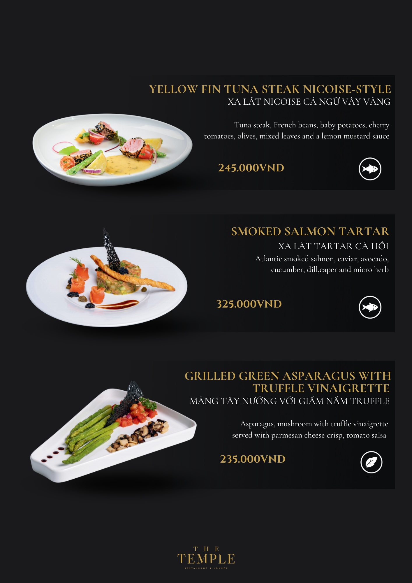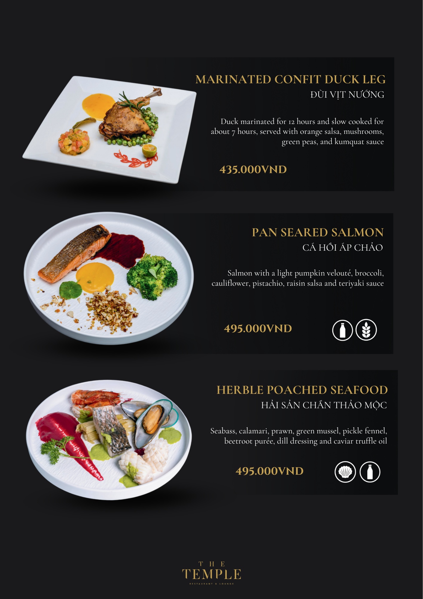 - Giá menu chưa bao gồm VAT & phí phục vụ.
