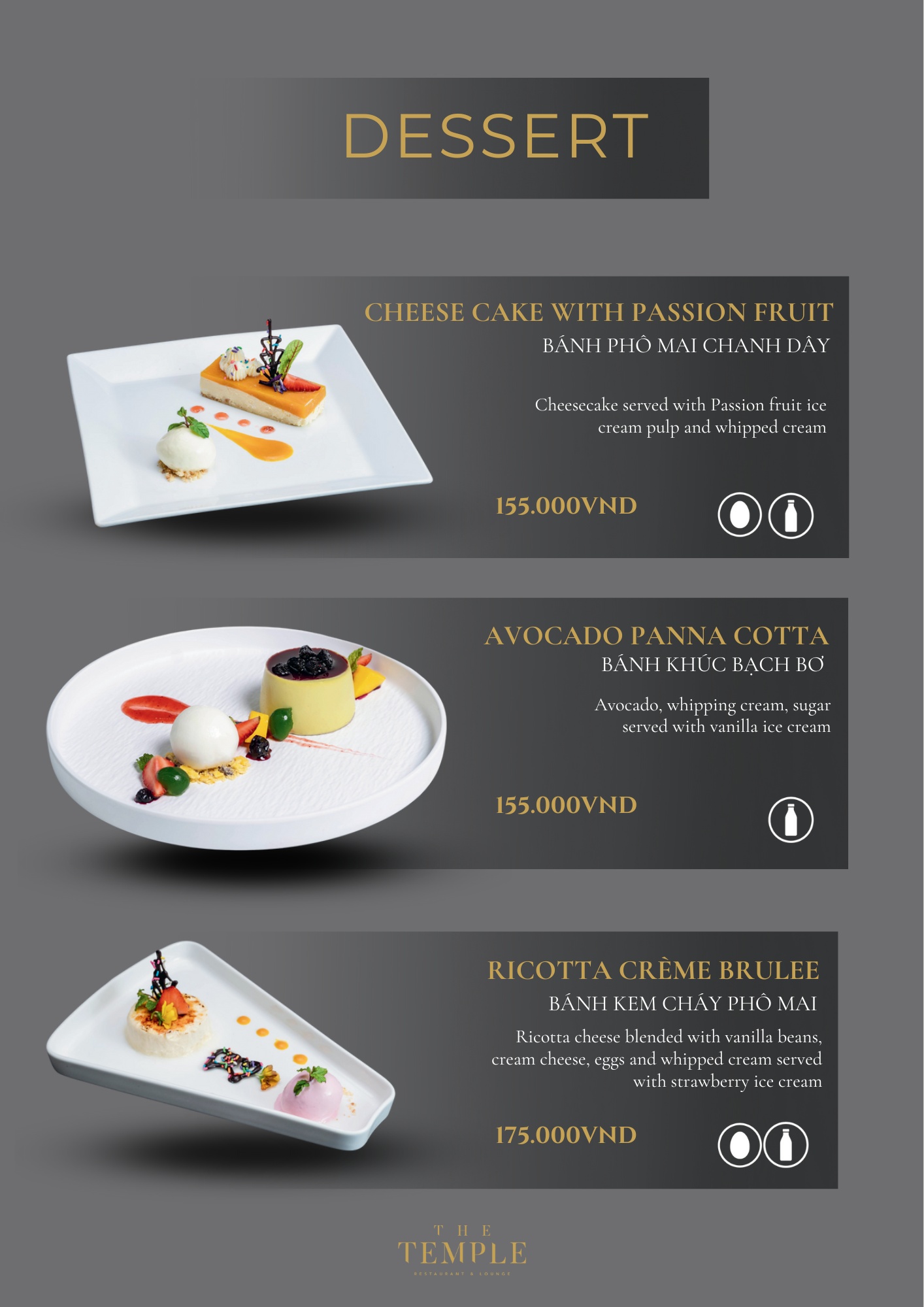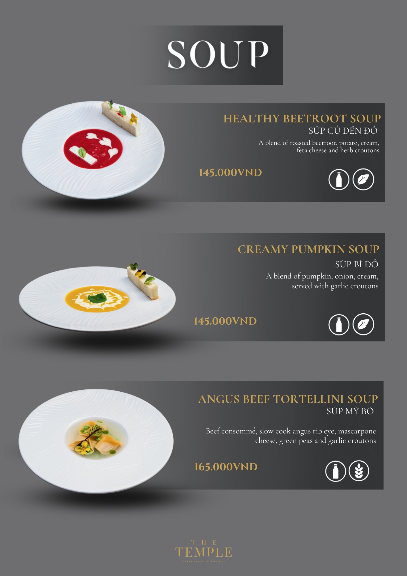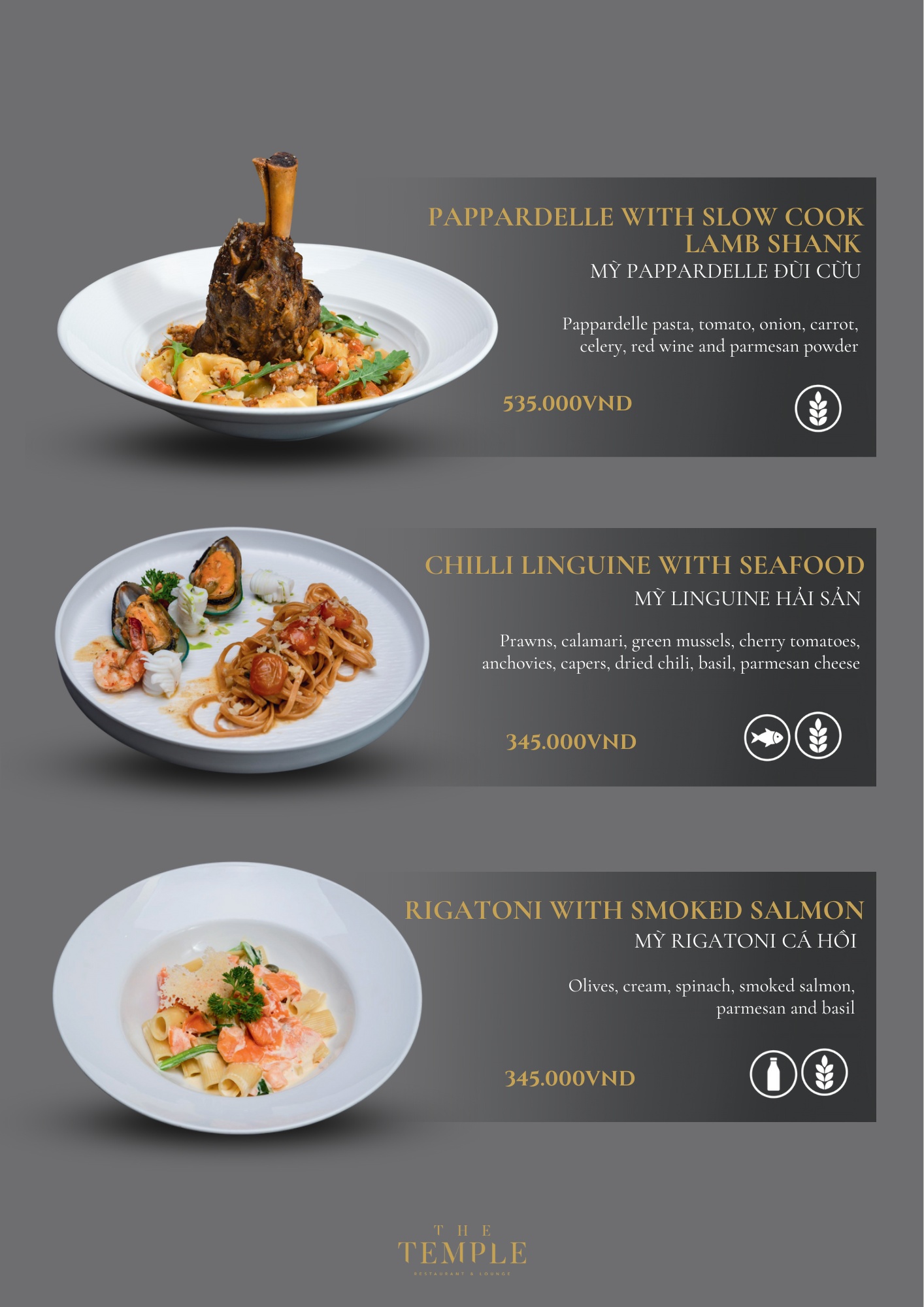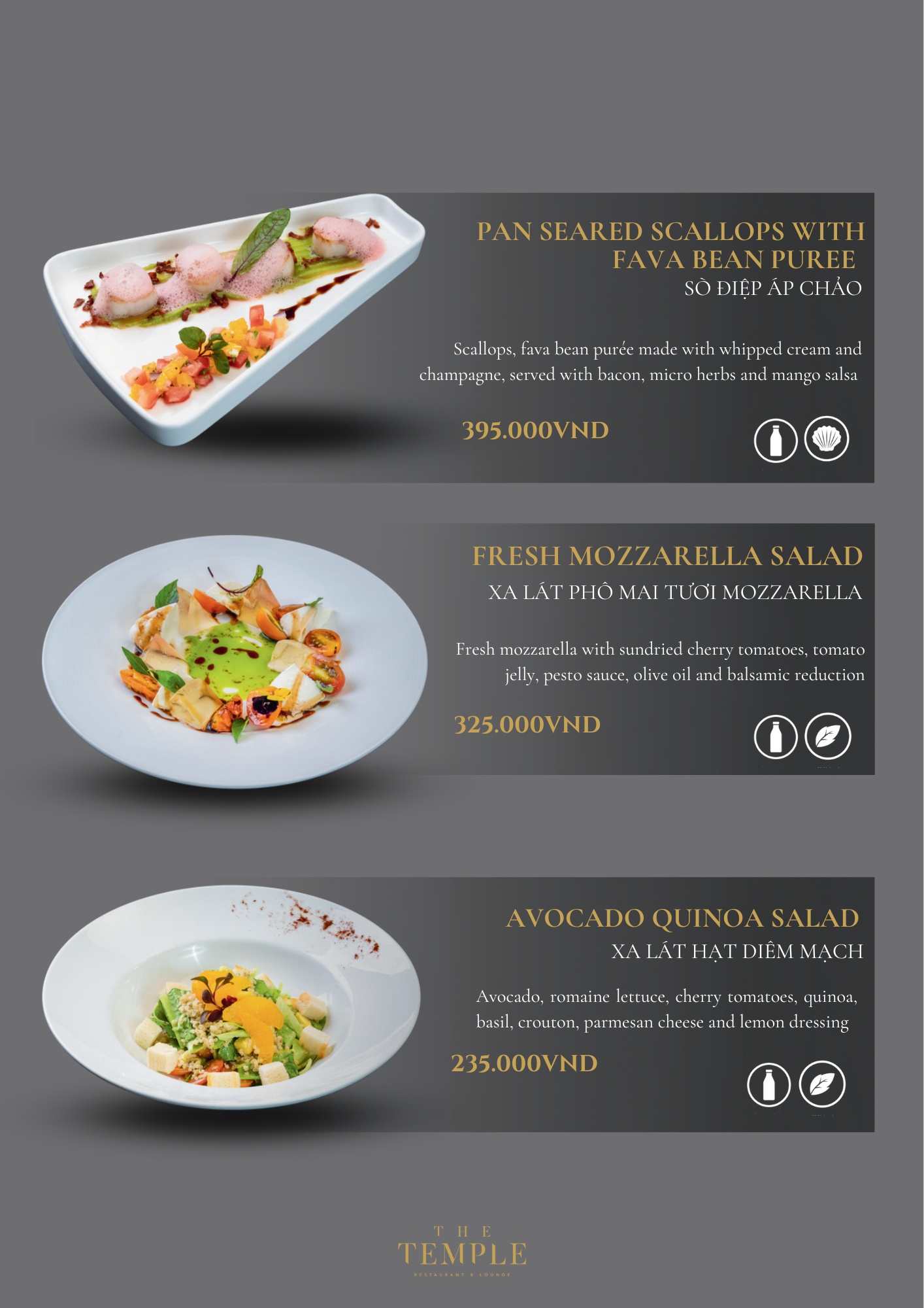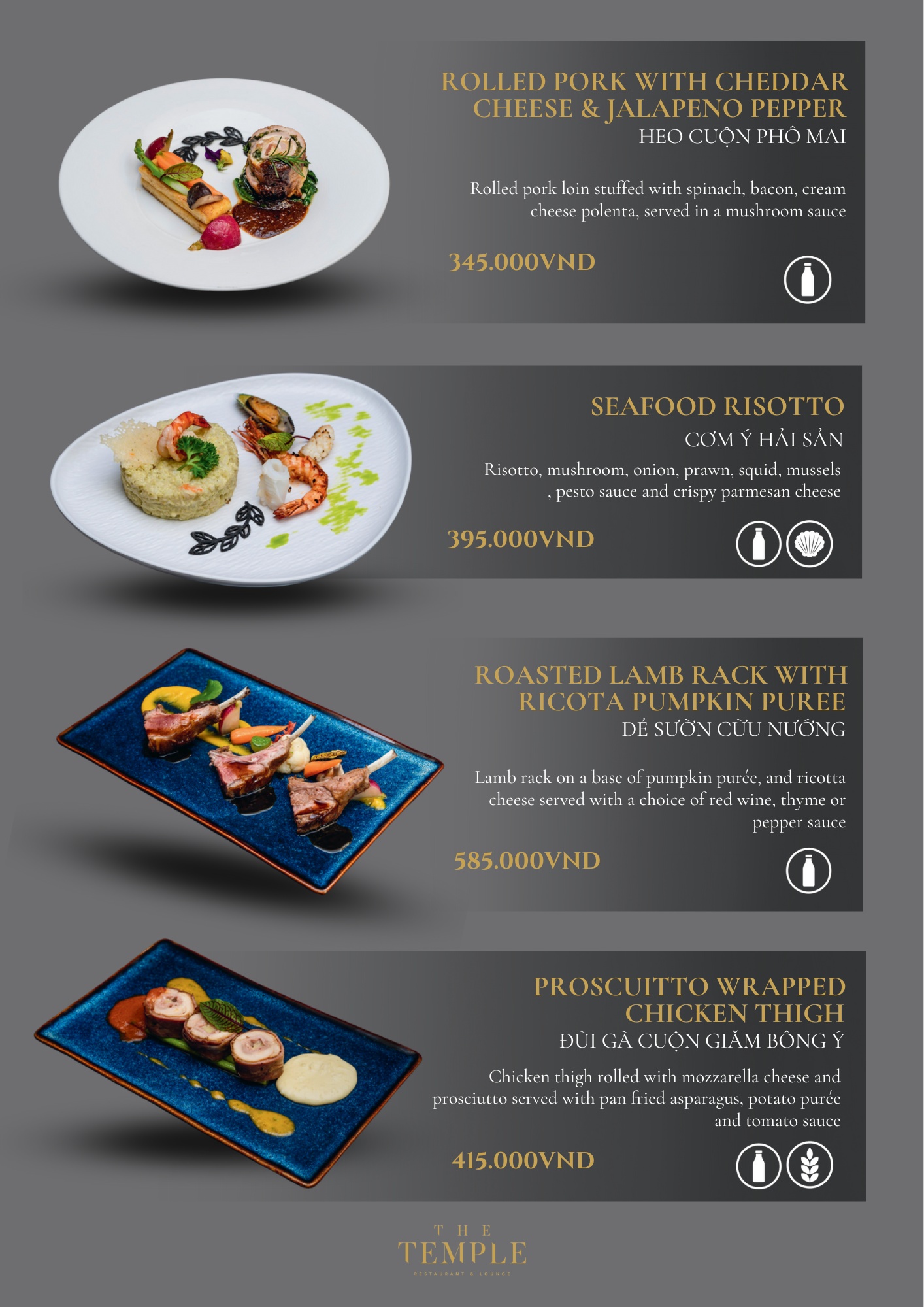 - Giá menu chưa bao gồm VAT & phí phục vụ.