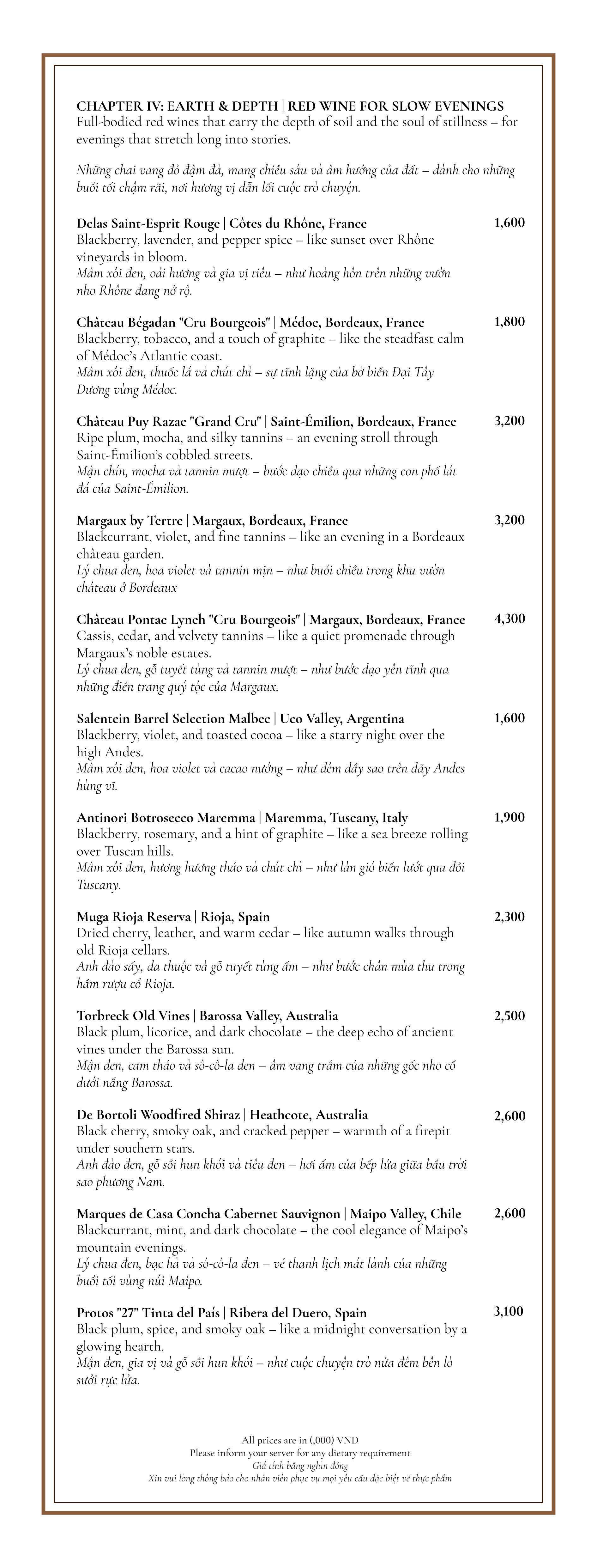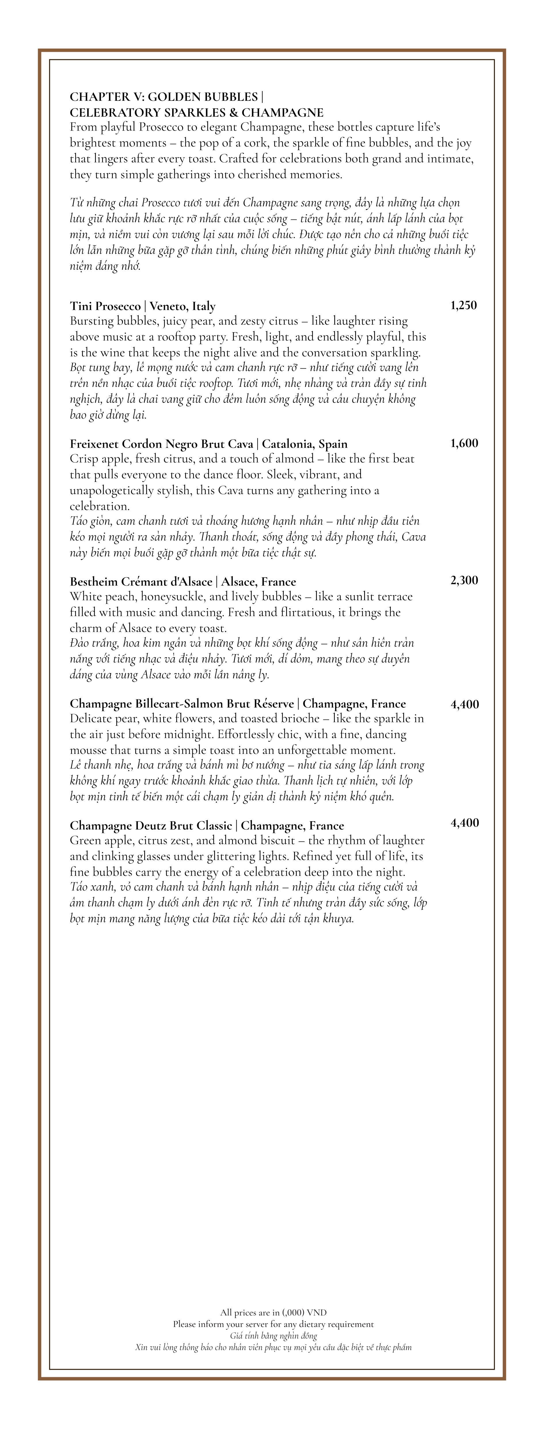 - Hóa đơn VAT: Nhà hàng xuất hóa đơn khi khách hàng yêu cầu. Mức phí VAT: theo quy định hiện hành.