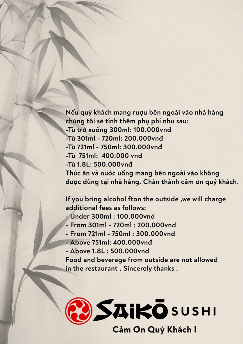 - Hoá đơn VAT: Nhà hàng luôn thu 10% VAT