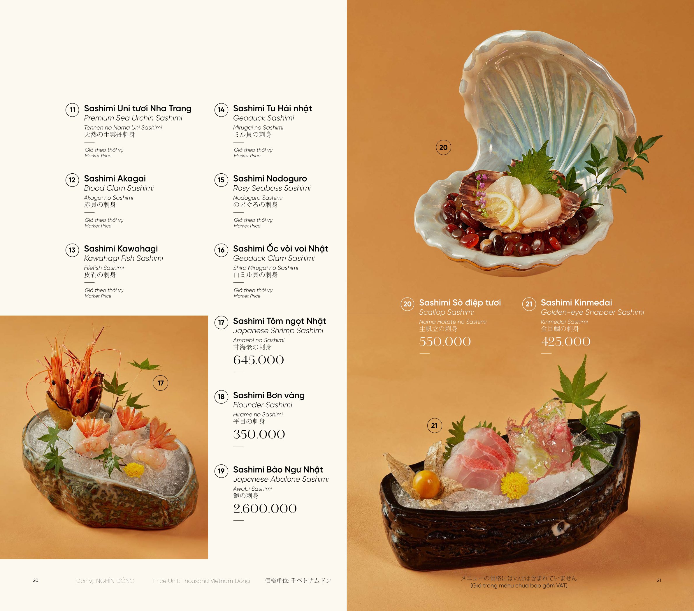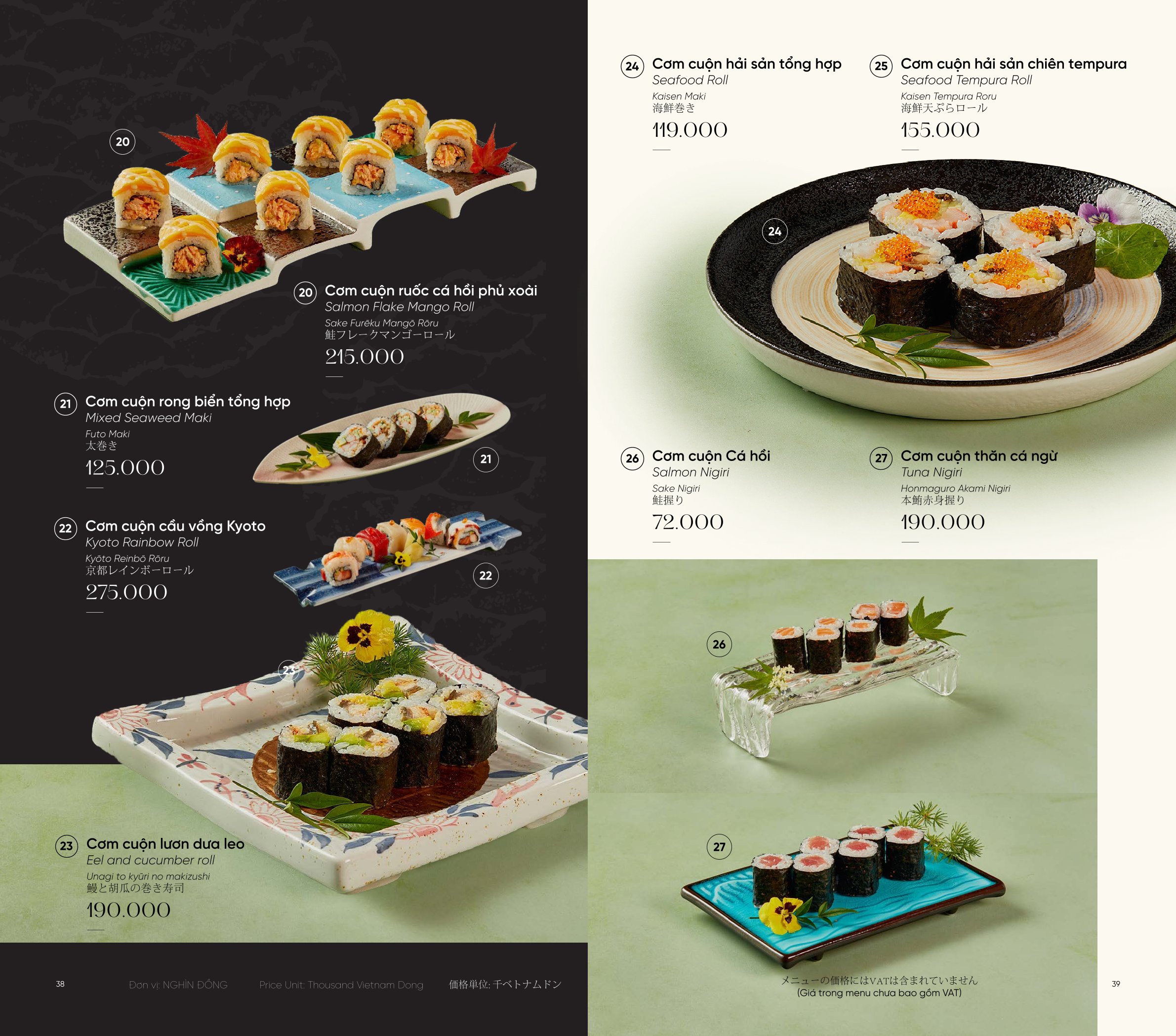 3. Giá menu chưa bao gồm VAT