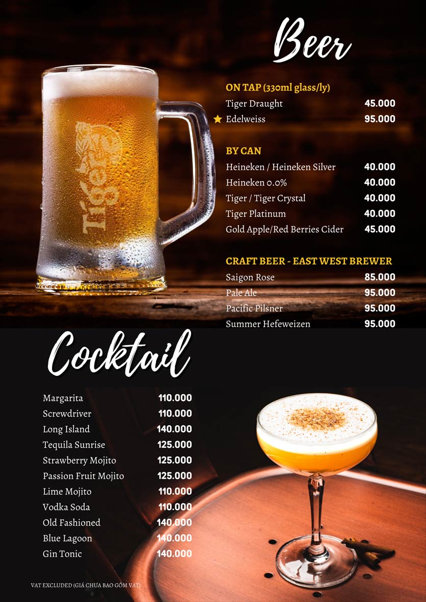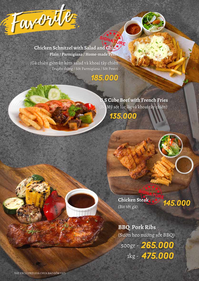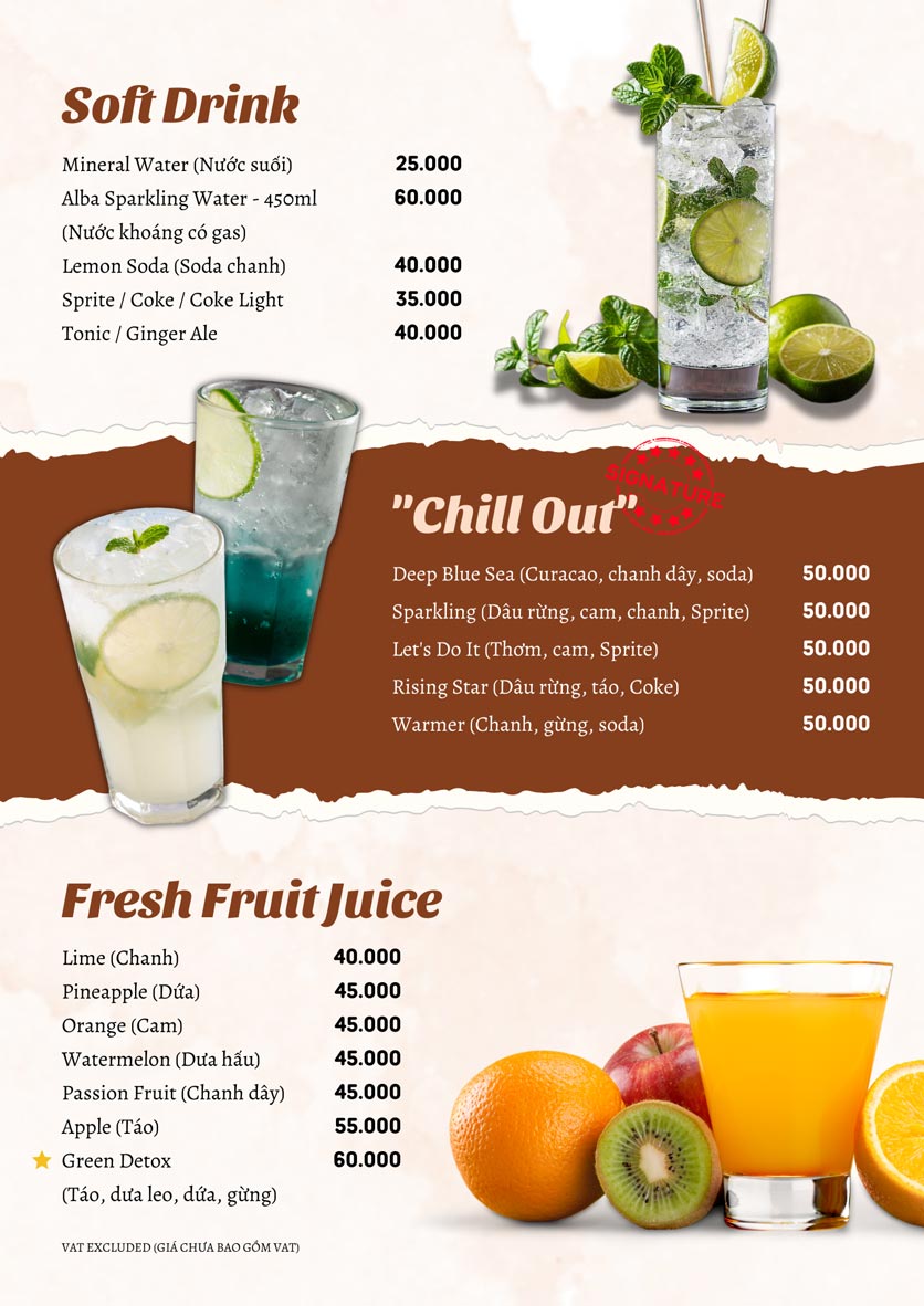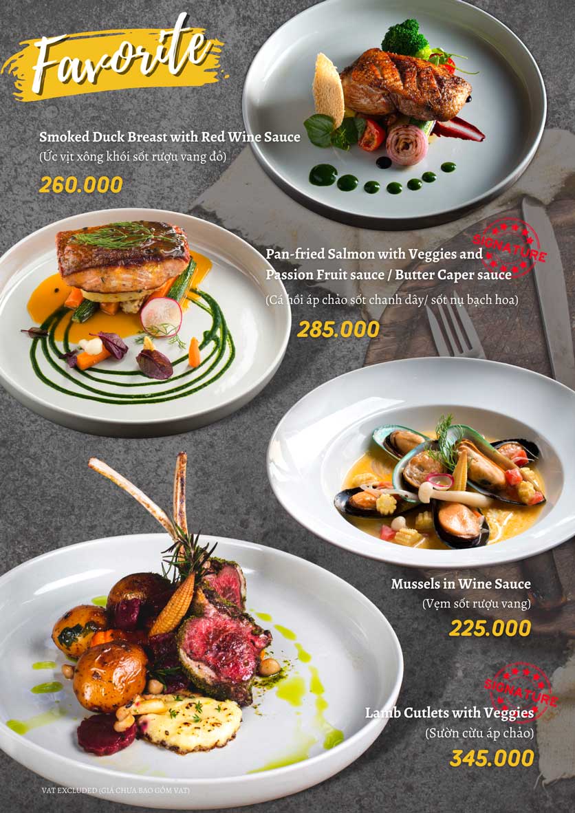 - Giá menu chưa bao gồm VAT. Nhà hàng luôn thu VAT theo Luật hiện hành.
