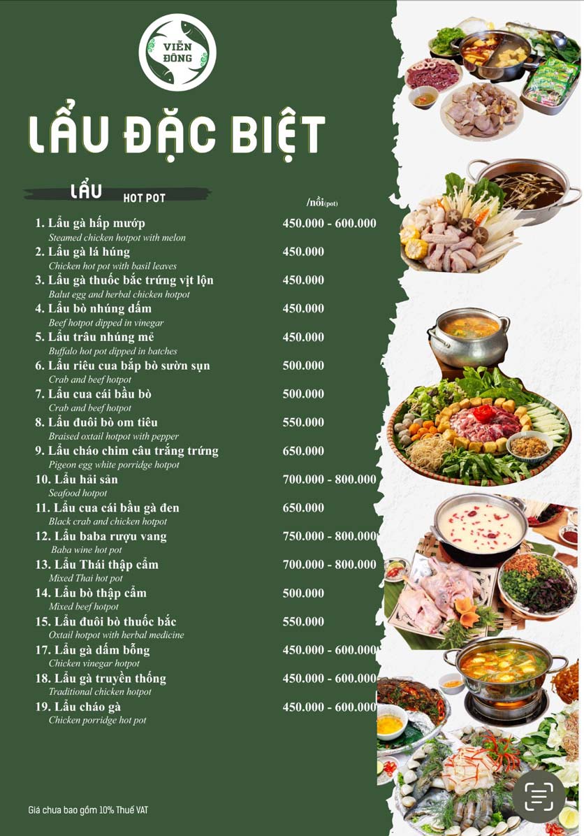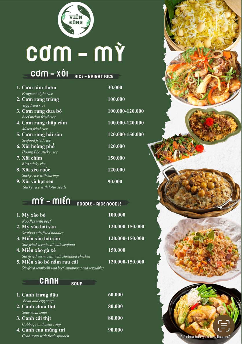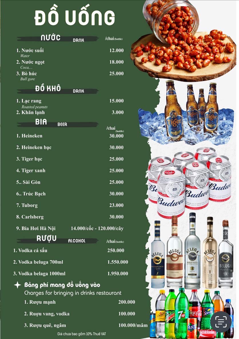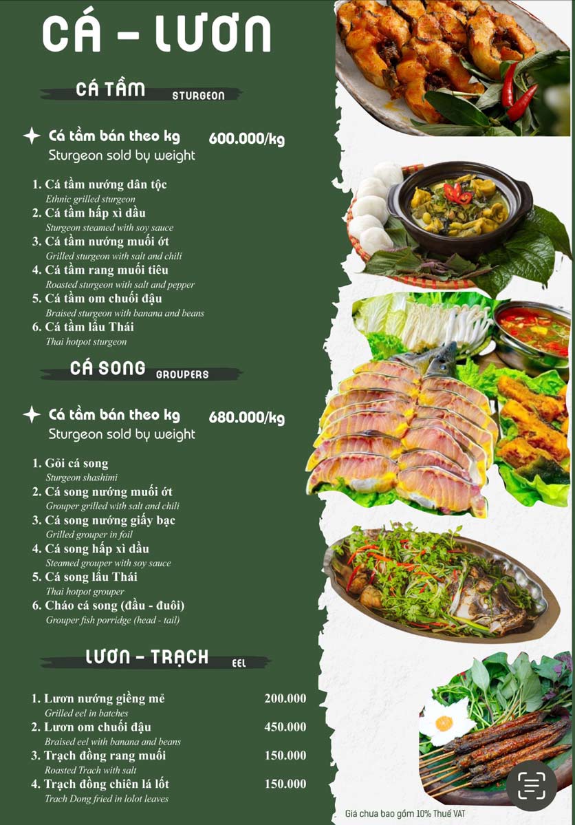 - Giá Menu chưa bao gồm VAT. Quý khách lấy hoá đơn vui lòng thanh toán 10% VAT