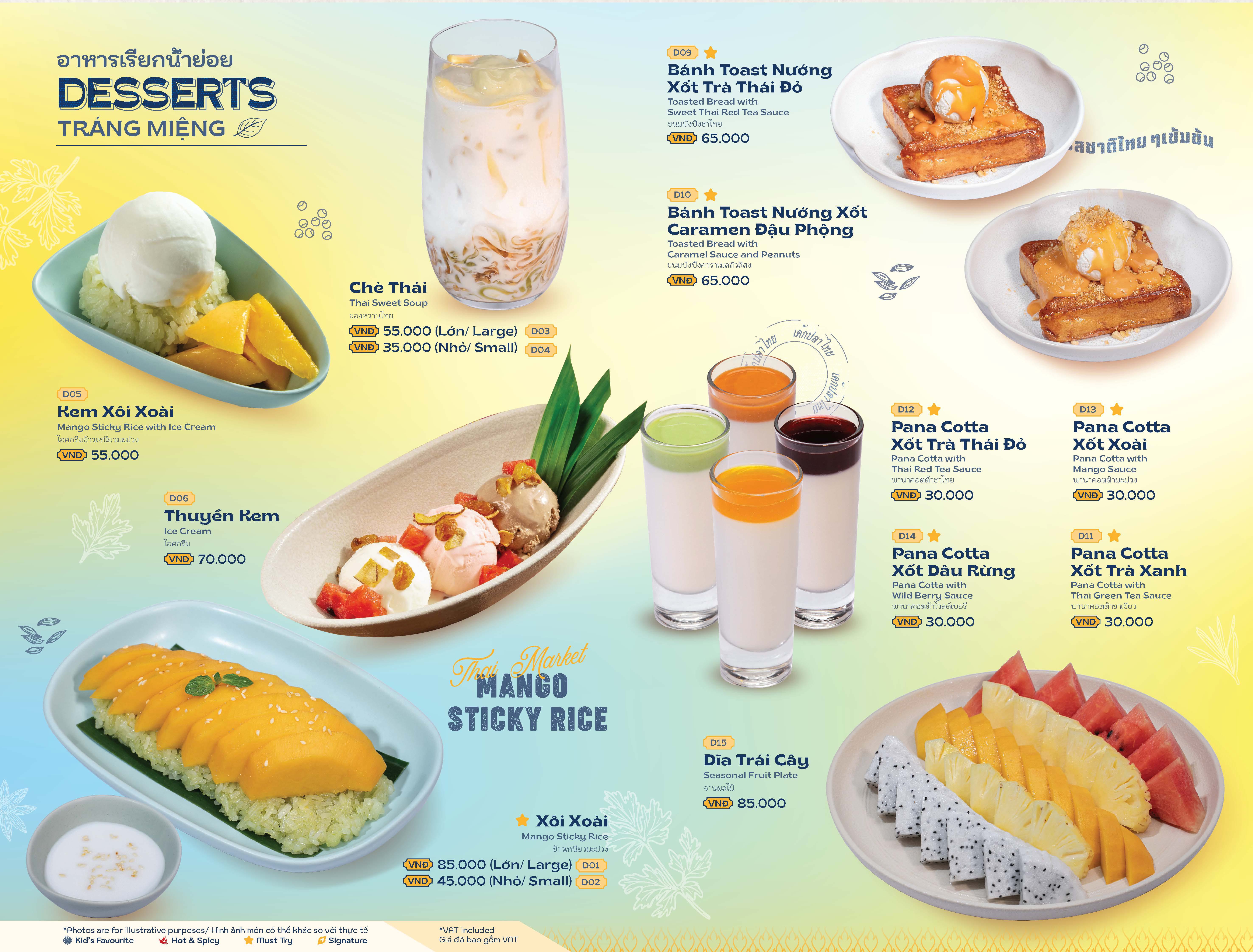 - Áp dụng với Thực đơn chính alacarte & Thực đơn combo theo số khách quy định.